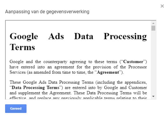 - je een bewerkersovereenkomst met Google hebt gesloten;