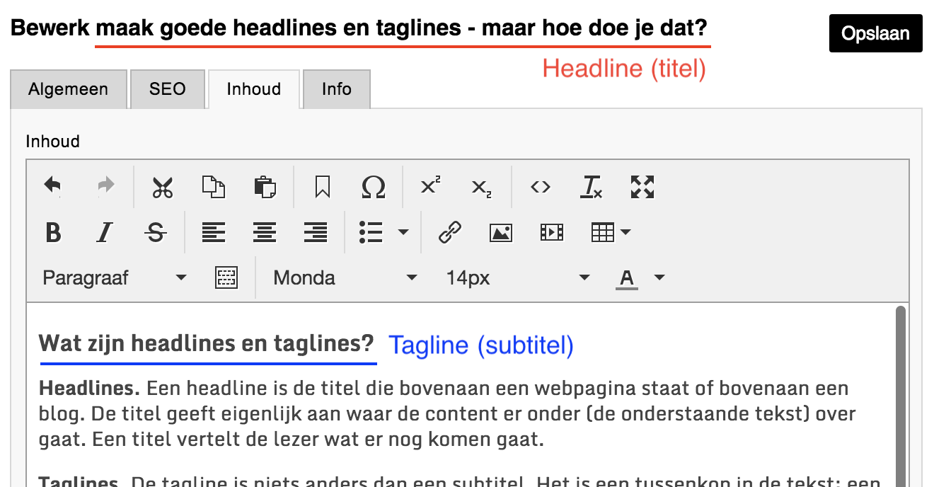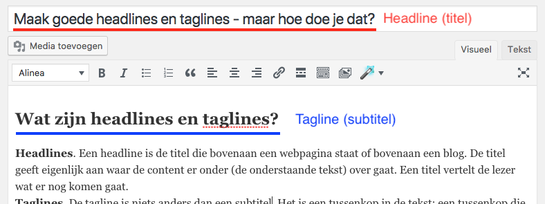 <em>Headlines staan boven elke websitepagina en blogpagina en daaronder volgen nog diverse taglines. Hoe schrijf je goede headlines en taglines en waarom is dat eigenlijk belangrijk?</em>