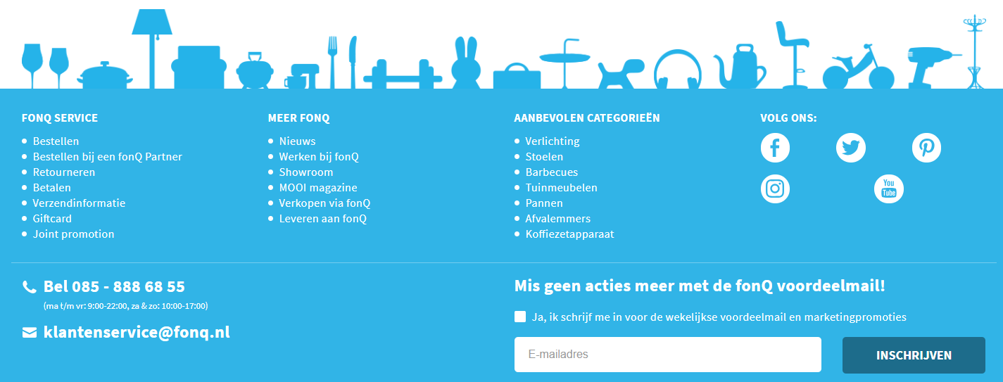Ooit was het zo dat hoe meer links je in de footer zette, hoe beter je door Google gevonden werd. Het gevolg was dat de footer werd volgepropt met tientallen links naar je websitepagina’s. Men noemde dat ook wel de fat footer. Een groot nadeel was dat de websitebezoeker door de hoeveelheid informatie door de bomen het bos niet meer zag.