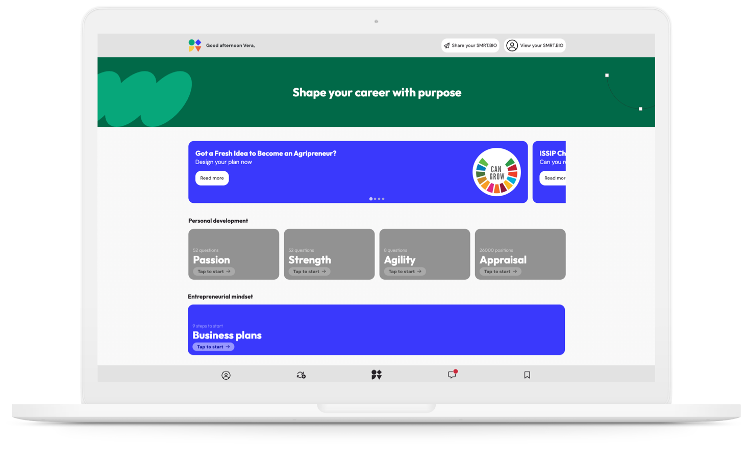 SMRT.bio is een platform dat mensen en organisaties helpt bij ontwikkeling en ambities. Het biedt een gebruiksvriendelijke omgeving met cursussen, testen en profielen, nu uitgebreid met moderne technologieën zoals AI. Het doel: één plek waar studenten, werkzoekenden, werknemers en ondernemers kunnen leren, meten en groeien.